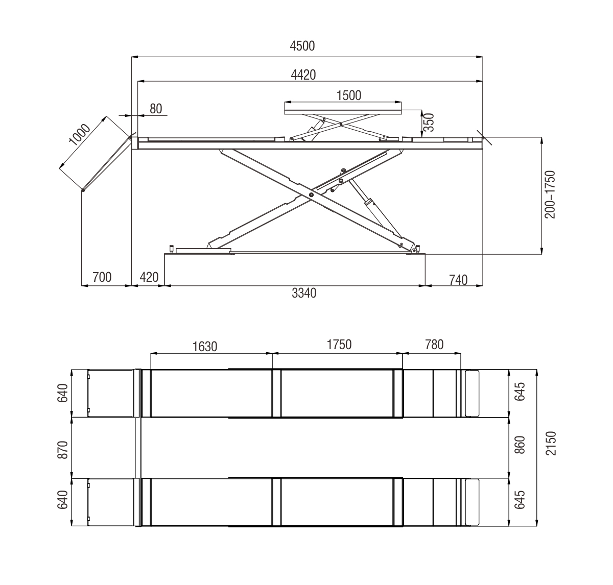 超薄子母剪式舉升機(jī)適用于各種檔次汽車(chē)的專(zhuān)業(yè)四輪定位和車(chē)輛檢測(cè)、維修及保養(yǎng)。